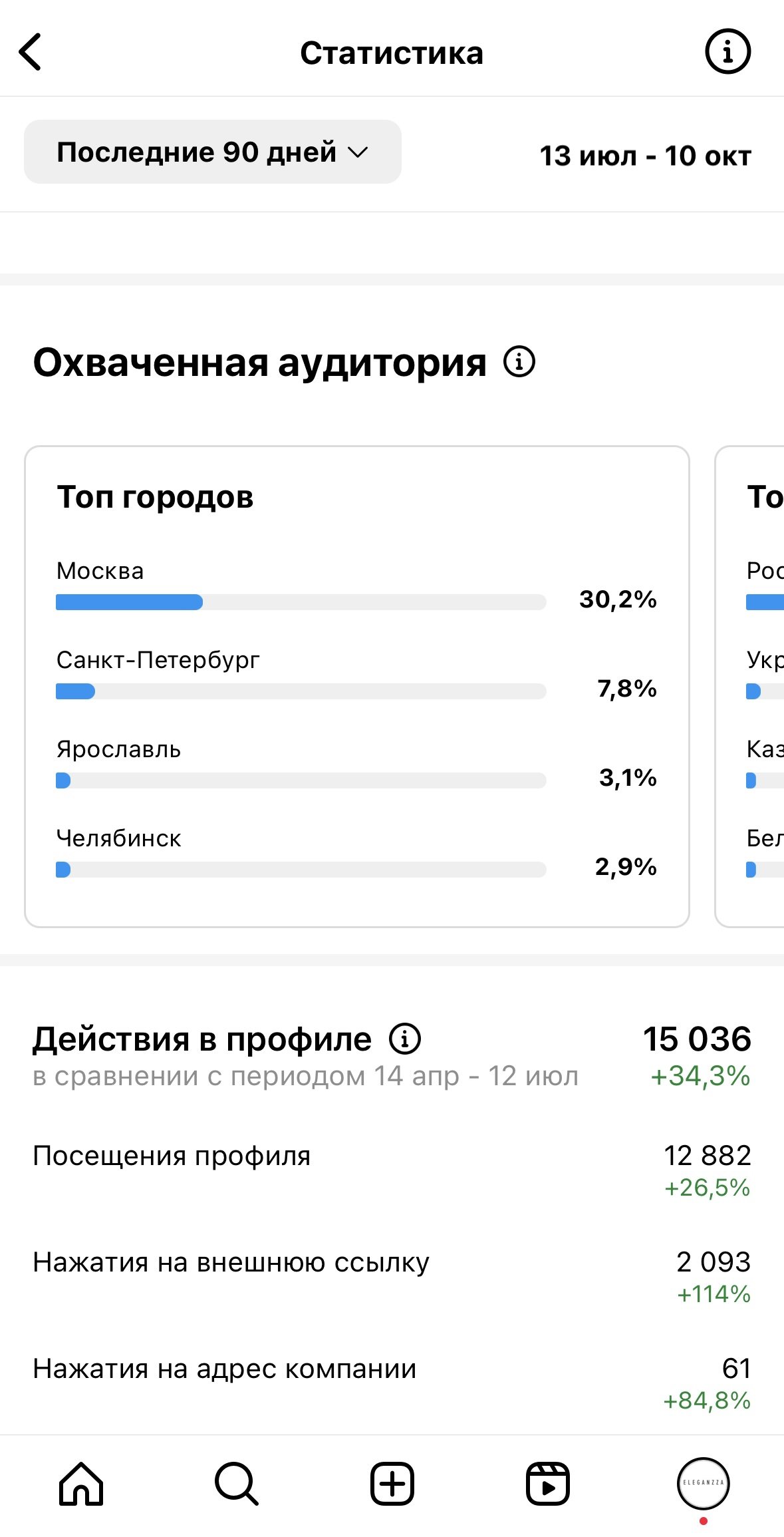Провели полный аудит аккаунта и предложили новые варианты описания аккаунта, наполнения актуальных, рубрики и форматы контента, а также способы привлечения новой аудитории.