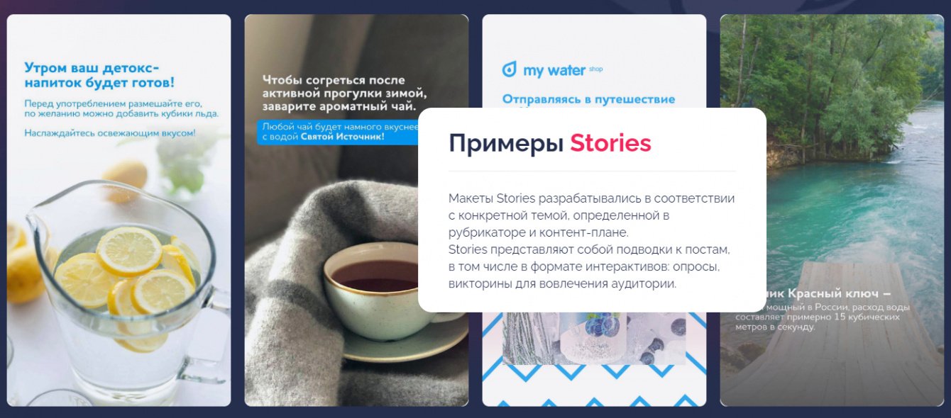 Макеты Stories разрабатывались в соответствии с конкретной темой, определенной в рубрикаторе и контент-плане. Stories представляют собой подводки к постам, в том числе в формате интерактивов: опросы, викторины для вовлечения аудитории.
