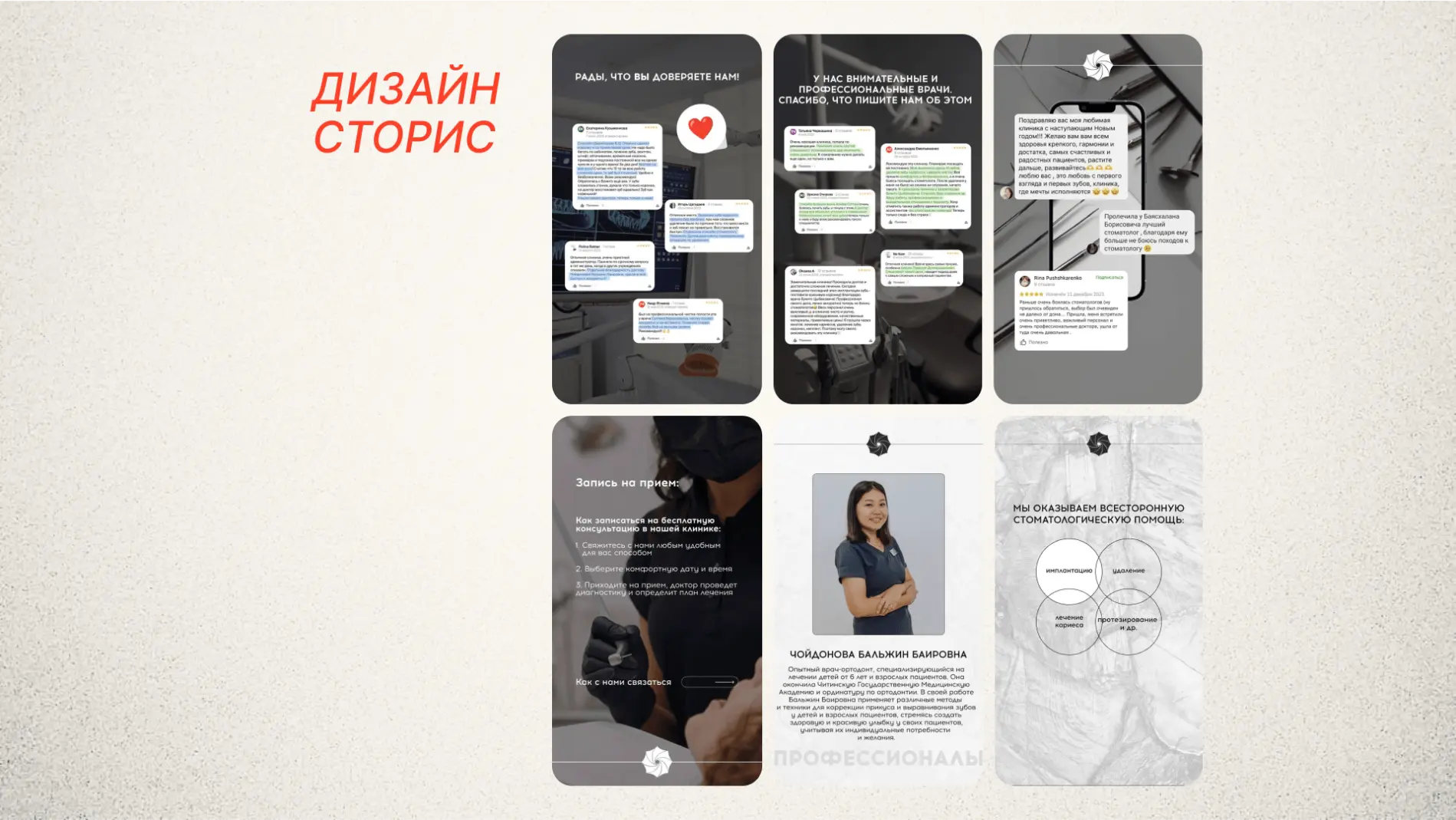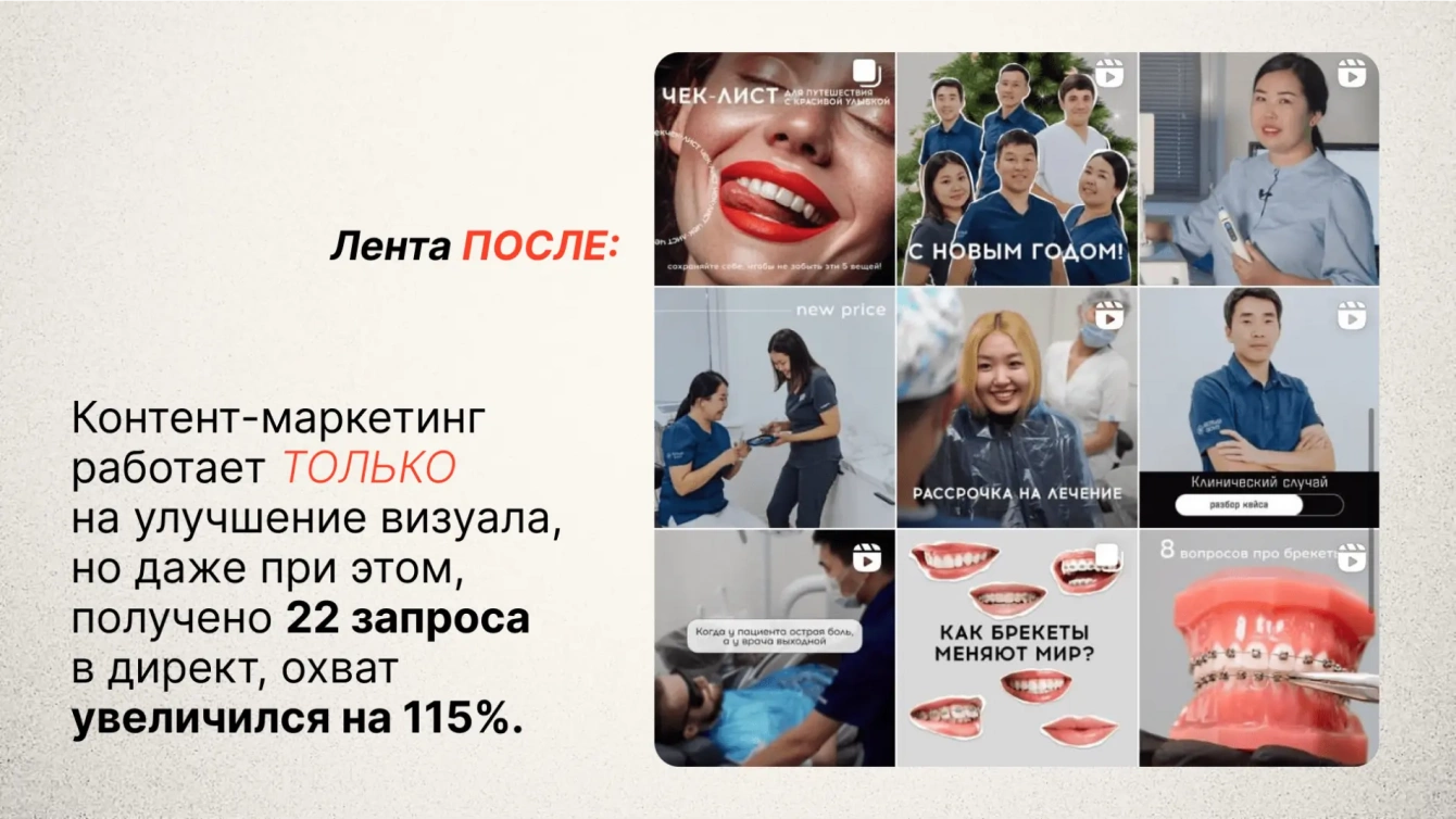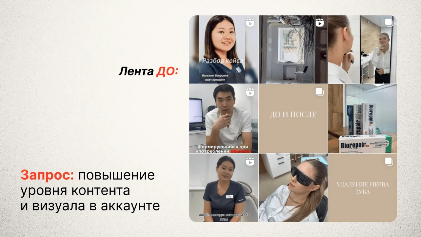 На этапе обсуждения сотрудничества клиент показал нам странички- референсы, это оказались московские аккаунты стоматологических клиник, ведение которых очень нравилось клиенту. Мы проанализировали их страницы и составили небольшой анализ контента, чтобы в дальнейшем использовать похожие механики продвижения.