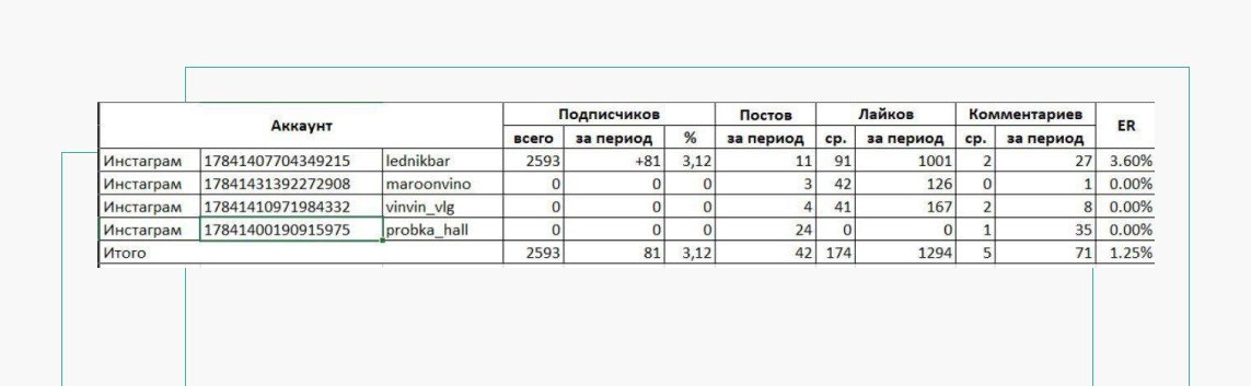 В ноябре 2021 года к нам обратился Винный бар ЛÉДНИКЪ, за анализом текущий ситуации в социальной сети, которую они вели. Самостоятельная работа заказчика с соцсетью не приносила желаемых результатов, в силу нехватки времени и специализированных знаний.