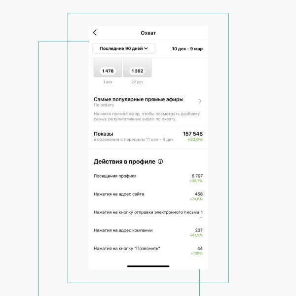 Наши работы принесли повышение всех показателей. Это видно на скриншотах, процент указан в отношении предыдущего периода, когда аккаунт вели без стратегии.