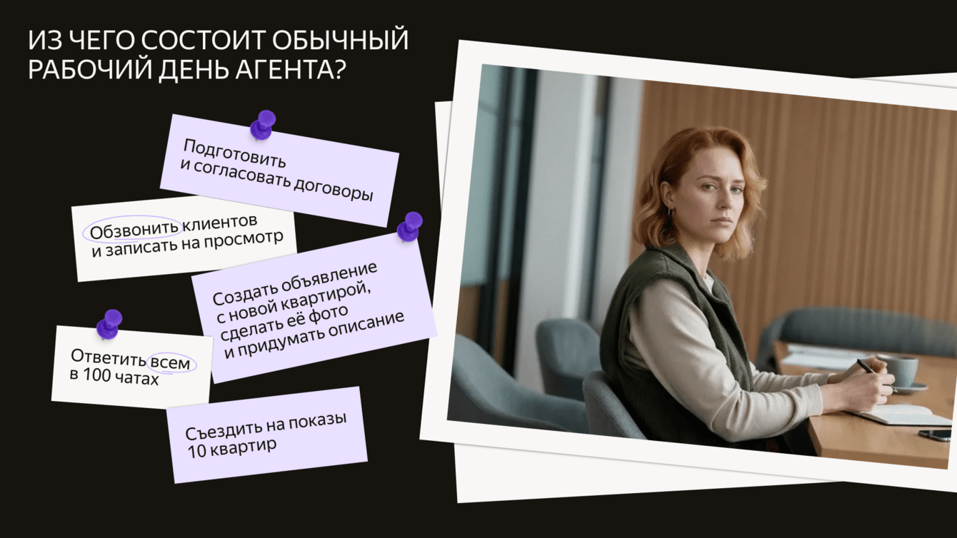 Наша целевая аудитория — агенты по недвижимости. Мы очень внимательно изучили исследования и узнали, что 60% российских риелторов — женщины. Они работают в одиночку, большую часть времени тратят на обзвоны, показы квартир и согласования деталей. Общаются с клиентами в ВК и Telegram и там же продвигают свои услуги.