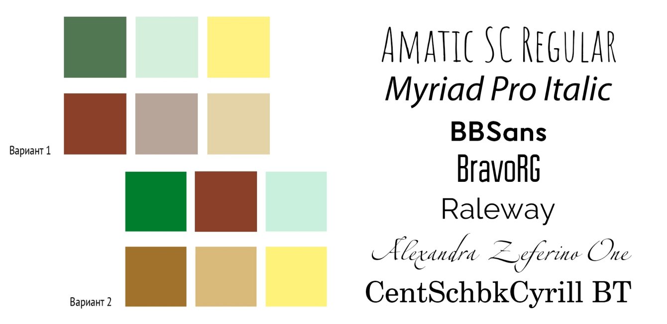 Заказчику были предложены несколько вариантов концепций с разными цветовыми решениями, шрифтами, стилистикой.