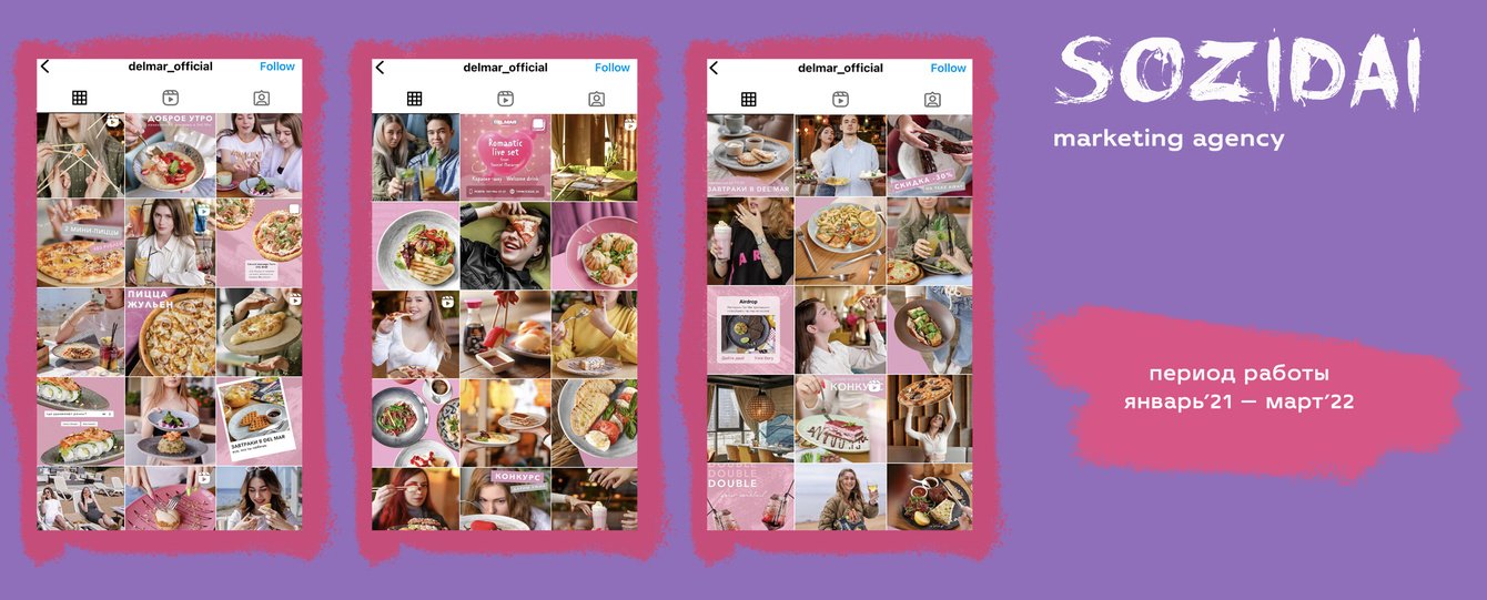 Del Mar – сеть ресторанов с обширным интернациональным меню и вечеринками по выходным. В сети 5 одноименных ресторанов в разных частях города, объединенных одним аккаунтом в соцсетях.