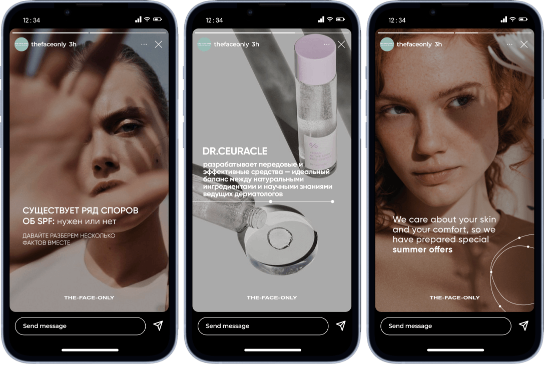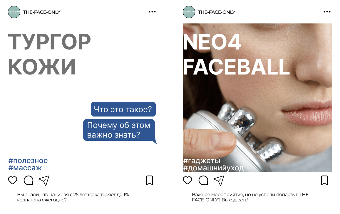 В каждом посте мы рассказывали пользователю о том, как правильно ухаживать за кожей, о проводимых акциях и новых услугах в пространствах бренда.