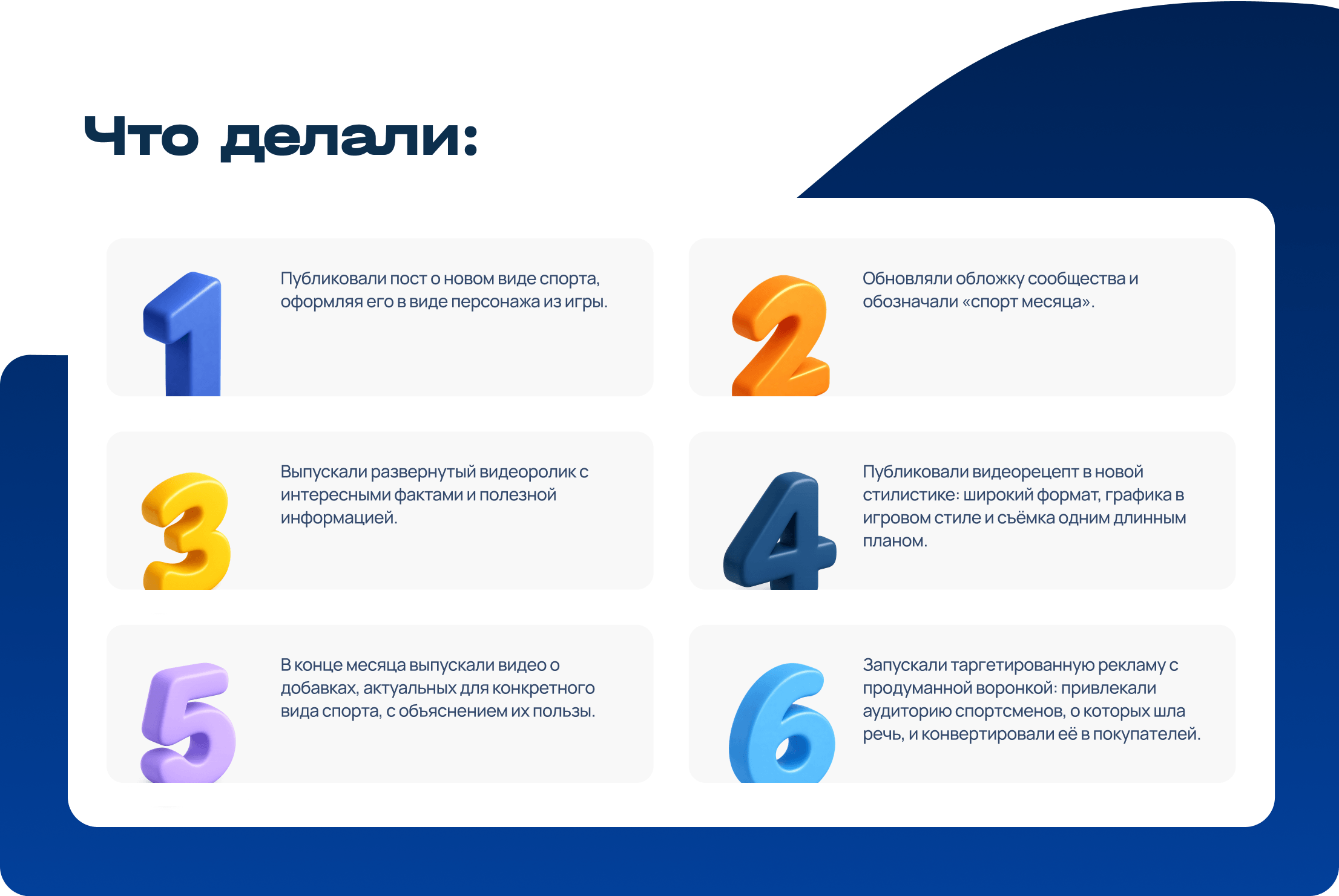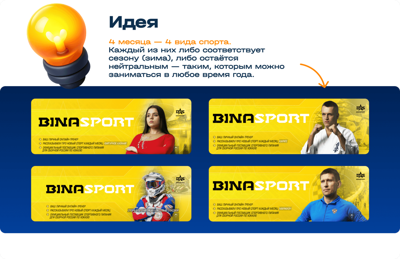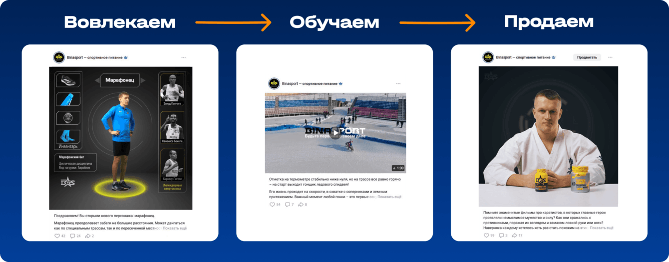 Разработать репозиционирование бренда Binasport в социальных сетях и донести до аудитории во «ВКонтакте», что продукция компании подходит не только «качкам».