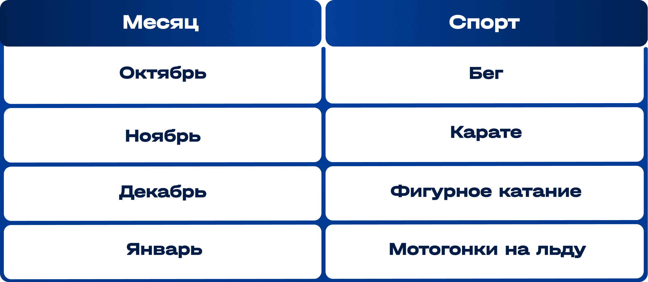Начать решили с бега — одного из самых популярных и доступных видов спорта. Далее — карате и несколько зимних дисциплин.