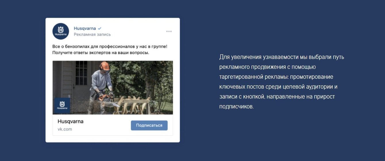 Наша дружба с Husqvarna началась в апреле 2019 года. За время сотрудничества мы создали дружное комьюнити на площадках бренда, значительно увеличили вовлеченность и количество аудитории, повысили узнаваемость бренда.