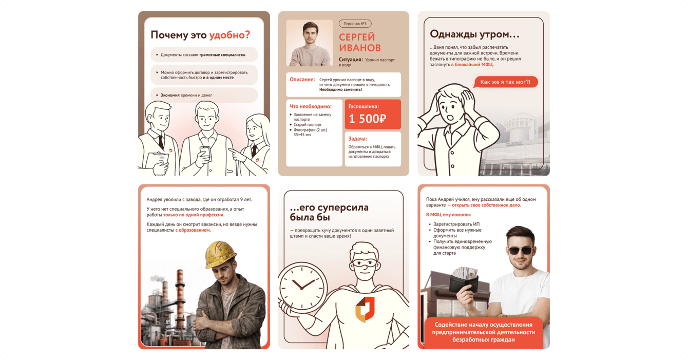 Мы продумываем мини-сценарии, через которые рассказываем об услугах и важной информации простым и понятным способом.