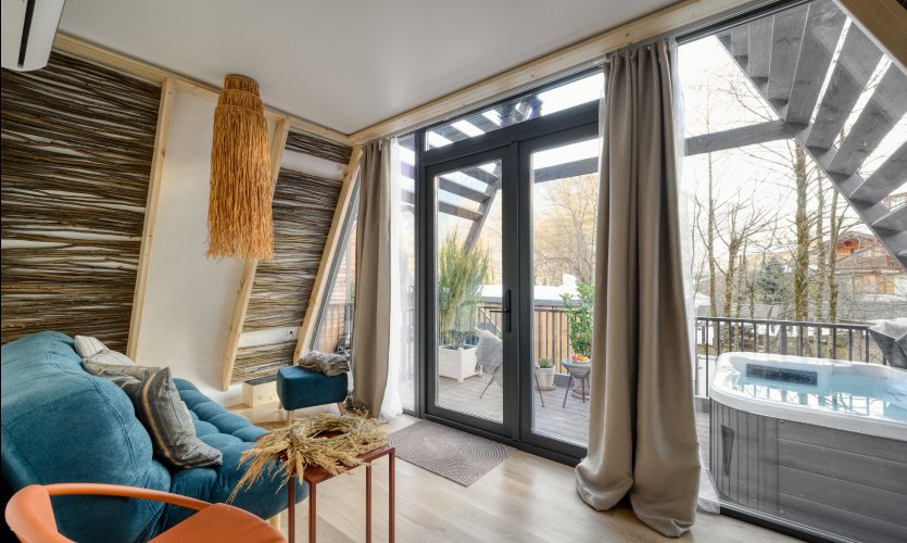 Эко-отель «Счастье в горах» - горный отель с персональными купелями и банным комплексом, расположенный в самом сердце Красной Поляны, в окружении величественных Кавказских гор в непосредственной близости ко всем активностям курорта. Отель предлагает эксклюзивный отдых в оригинальных бунгало с видом на горные вершины.
