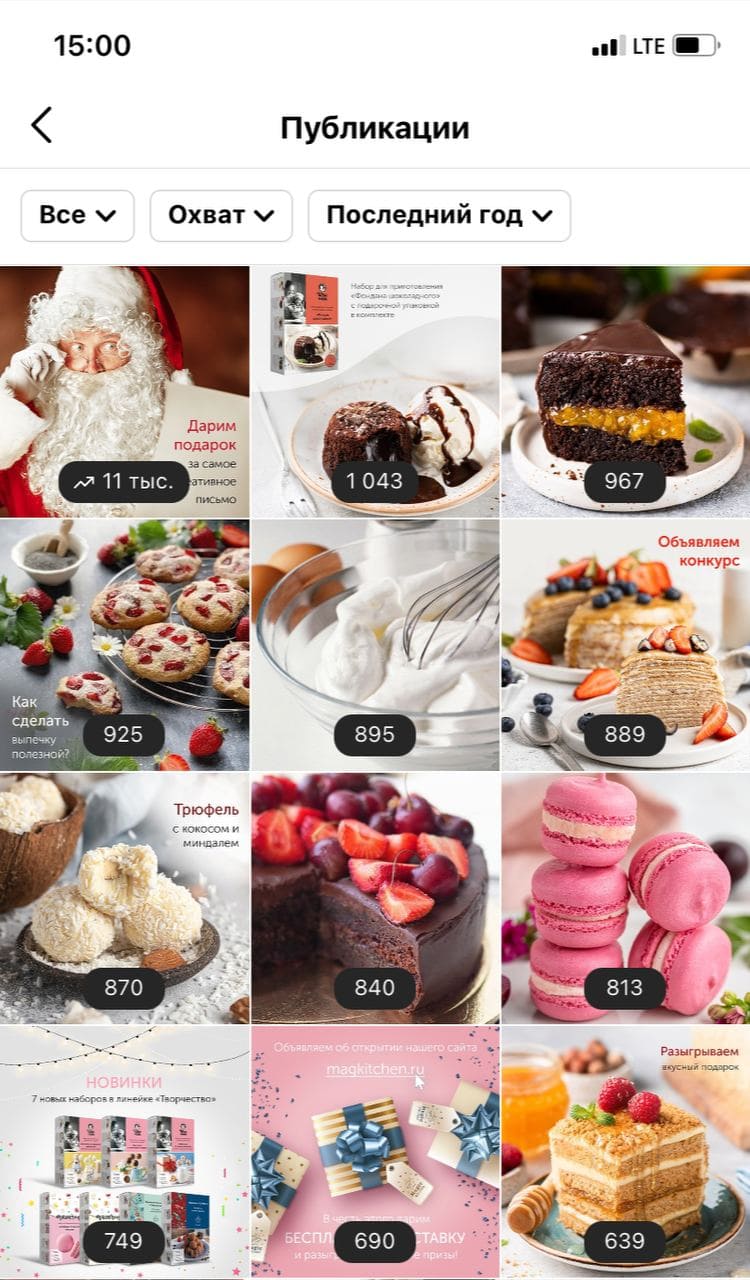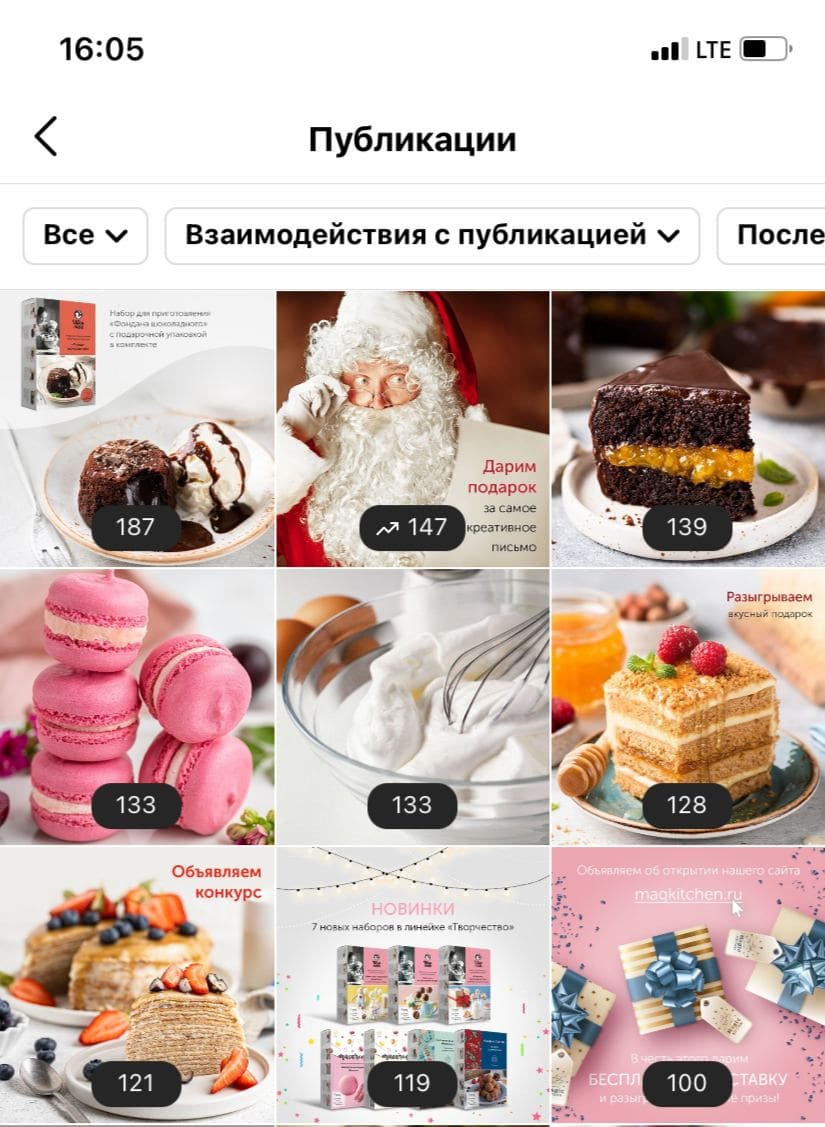 - На регулярной основе давали информацию о наборах для приготовления десертов, акциях, проводили конкурсы и активности, как в постах, так и в сторис;