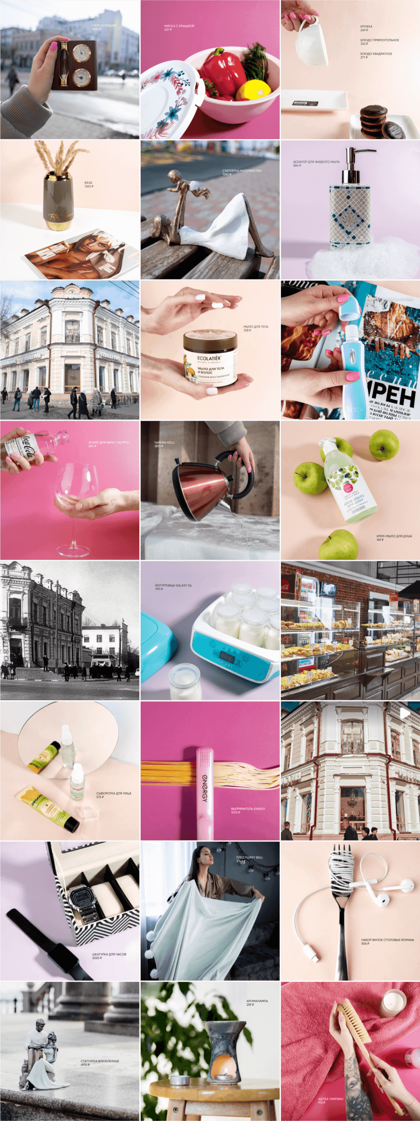 Разработали совершенно новую концепцию профиля, где особое внимание уделили визуальной составляющей: креативным съёмкам продукции и раскрытию исторического прошлого здания, в котором находится магазин «Универмаг Братьев Платоновых».