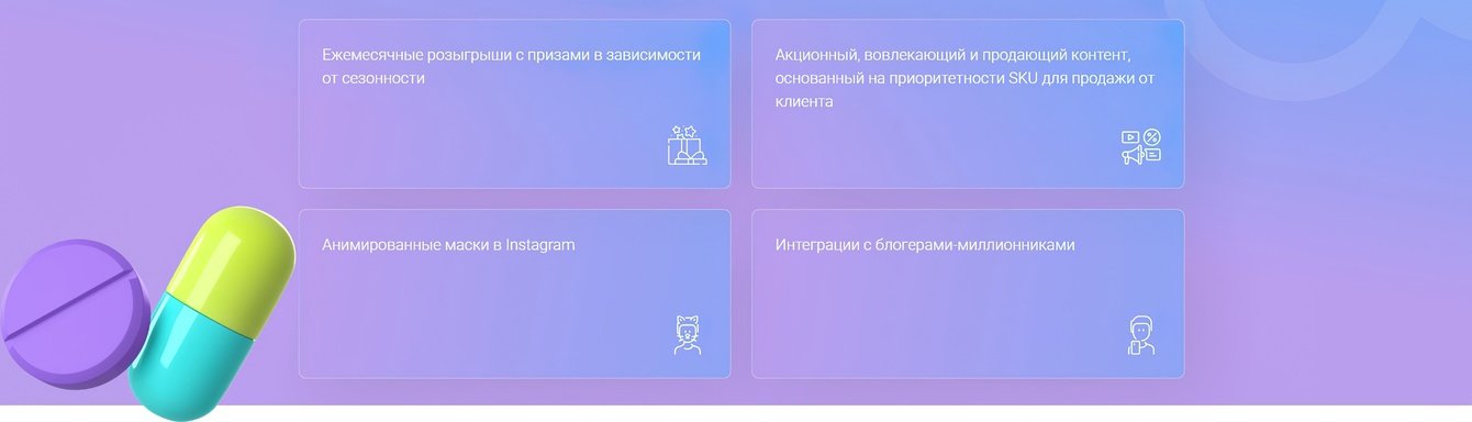 — Уход от скучной «больничной» темы, популяризировать идею внимательного отношения к здоровью через лёгкую подачу контента, нативно донести преимущества аптеки у дома, мобильного приложения, карты лояльности