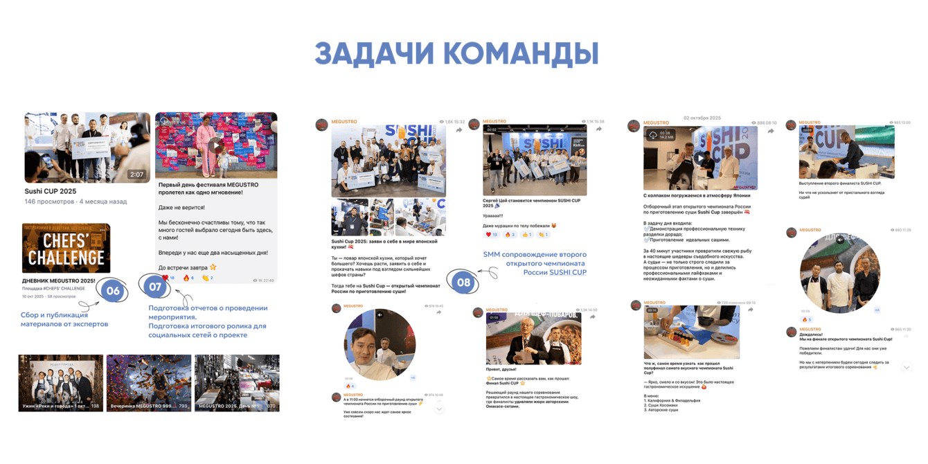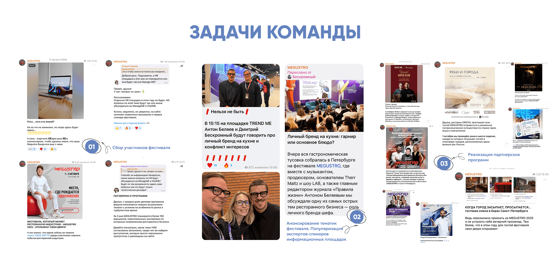 Уже в 9 раз гастрономический фестиваль MEGUSTRO собирает в Санкт-Петербурге сотни представителей ресторанной индустрии: шеф-поваров, рестораторов, поставщиков и ведущих экспертов HoReCa (индустрия гостеприимства и общественного питания). Но за атмосферой большого профессионального события всегда стоит большая digital-работа. В 2025 году наша команда ЧИЧГРУПП сопровождала соцсети фестиваля в течение 3 месяцев – от первых анонсов до итоговых материалов после закрытия. Период сопровождения: 3 месяца (август–октябрь 2025). Ключевые каналы коммуникации: Telegram и ВКонтакте.
