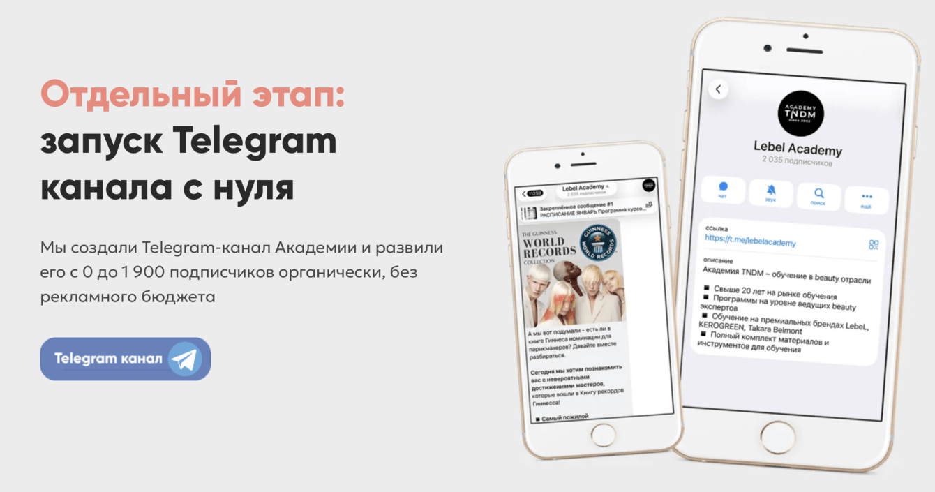 Мы создали Telegram-канал Академии и развили его до 1 900 подписчиков органически, без рекламного бюджета.