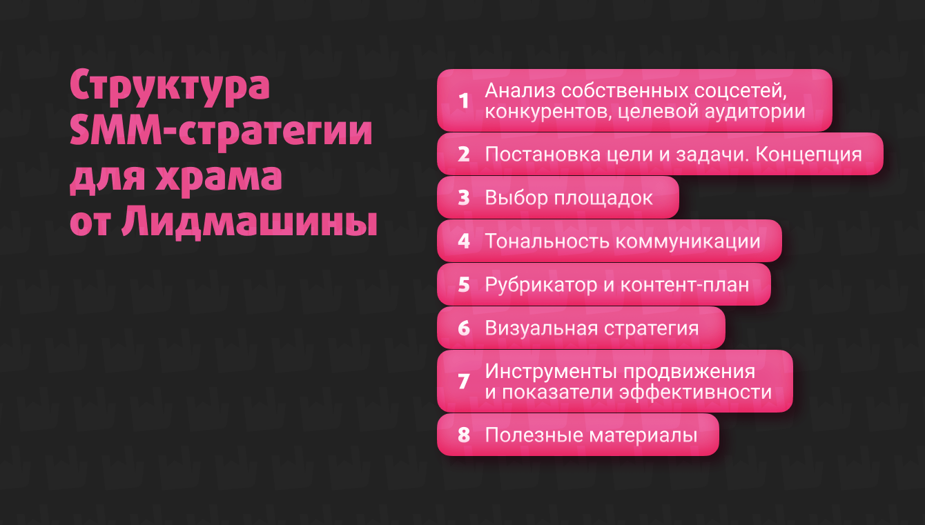 Тем не менее ключевые элементы стратегии остались актуальными. Если в храме решат возобновить работу, документ позволит без промедления запустить рекламу на целевую аудиторию, а в контент-плане можно будет найти идеи для публикаций.