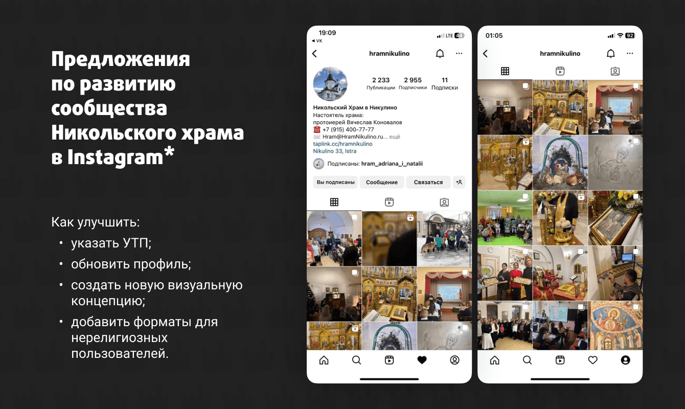 • предложить бесплатные методы для продвижения аккаунта храма в Instagram*.