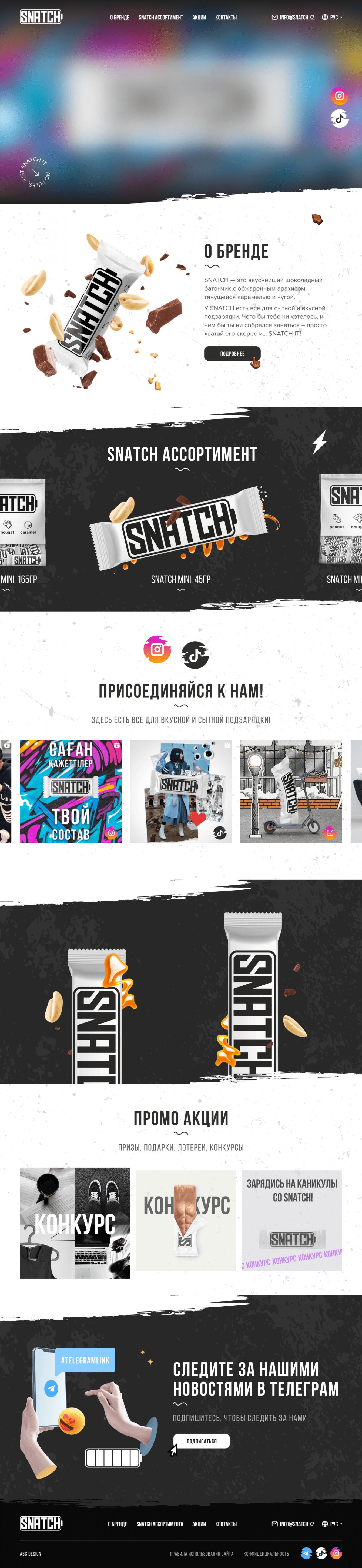 Мы в полном восторге от работы, которую сделала команда ABC Design. Вместе мы создали не только бренд, но и настоящее чудо! SNATCH стал не просто продуктом, а ярким символом вкуса и энергии. Спасибо за профессионализм, творческий подход и невероятное качество работы. Наш бренд получил все, о чем мы мечтали, и стал настоящим хитом на рынке. Рекомендуем команду всем, кто ищет качественное и эффективное решение для продвижения своего продукта!