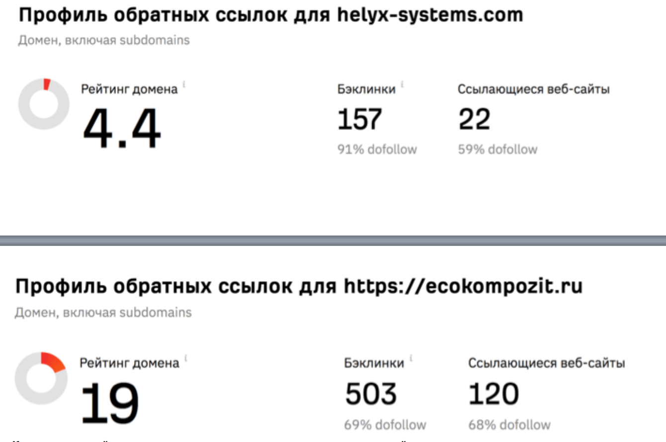 Как видно по рейтингу домена, результат продвижения по ссылочной массе значительно лучше чем у конкурентов. При продвижении используется технология раскрутки за счет доноров - тех сайтов, которые используются для наращивания ссылочной массы.