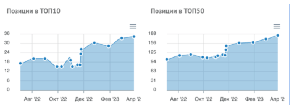 Для достижения результата были опубликованы страницы отвечающие поисковым запросам, выполнена перелинковка.
