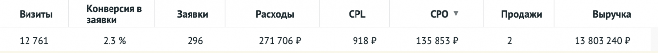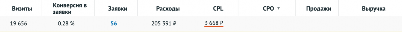 Помимо отсутствия продаж. Смущала низкая конверсия в заявку.
