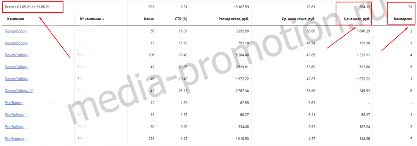 Была настроена реклама в Яндекс Поиск + Рся, которая показала с 1 по 31 мая пришло 31 заявок по 580 рублей.