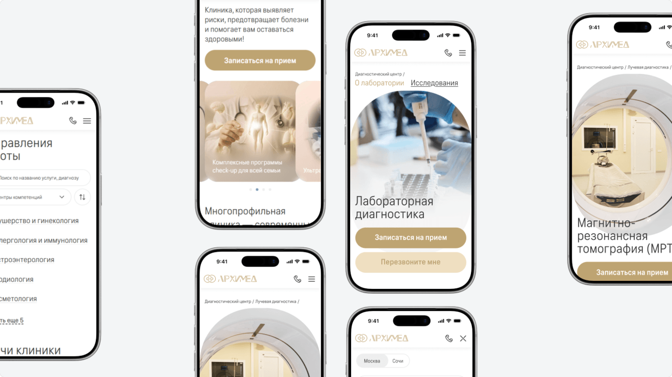 Чем современнее медицинская клиника, тем современнее должен быть и сайт. Для этого клиника «Архимед» обратилась за дизайном новых страниц в Студию Артемия Лебедева. Мы, как партнеры студии, взяли на себя верстку и обновление сайта на 1С-Битрикс.