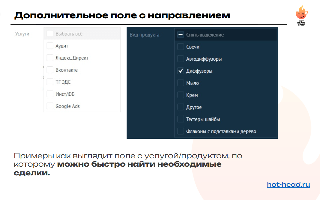 — разделить воронки продаж под каждое направление отдельно;