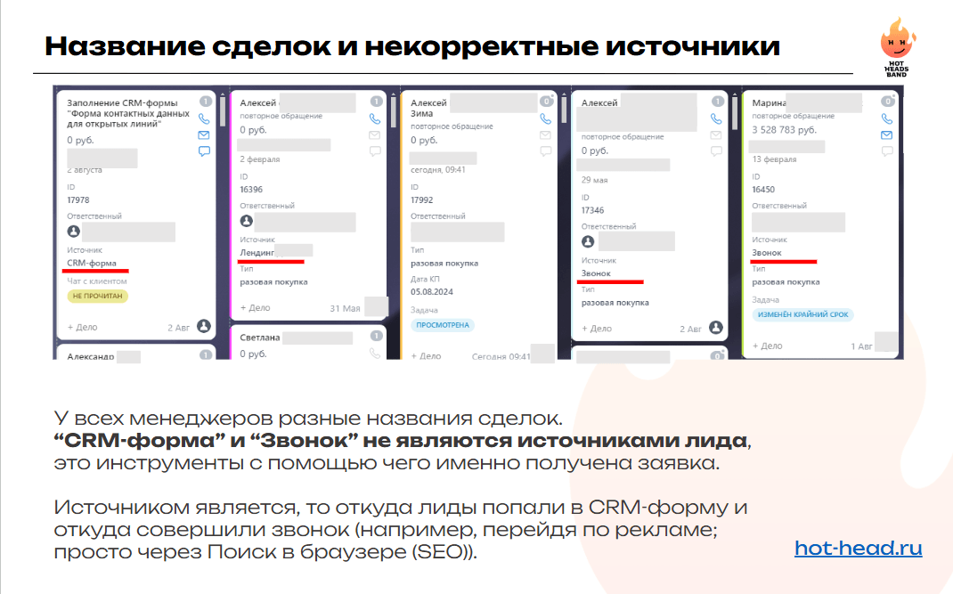 — стандартизировать название самих карточек сделок.