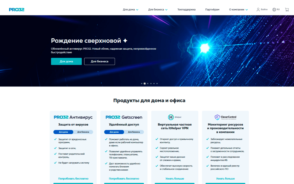 К нам обратилась компания PRO32, которая занимается продажей продуктов IT-решений для бизнеса разных размеров и для физических лиц. Нам предоставили возможность рекламировать Антивирус PRO32.