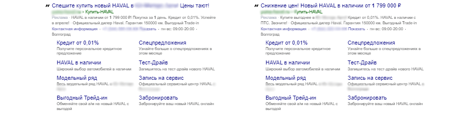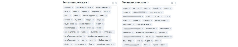 Мы оперативно отреагировали на полученную информацию, и, пока посадочная страница находилась в разработке, за 1 день подготовили и согласовали с клиентом квиз и отправили креативы на модерацию. Для Госпрограммы мы добавили акционную кампанию в РСЯ. Да, до этого мы отключили РСЯ, но здесь цель была – получить хороший охват и привлечь внимание потенциальных клиентов к выгодным условиям приобретения Haval. Собрали семантику: