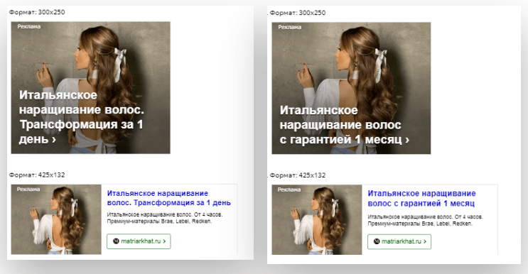Объявления разделены на 2 категории устройств десктопные и мобильные. Добавлены для а/б теста 2 варианта заголовка.