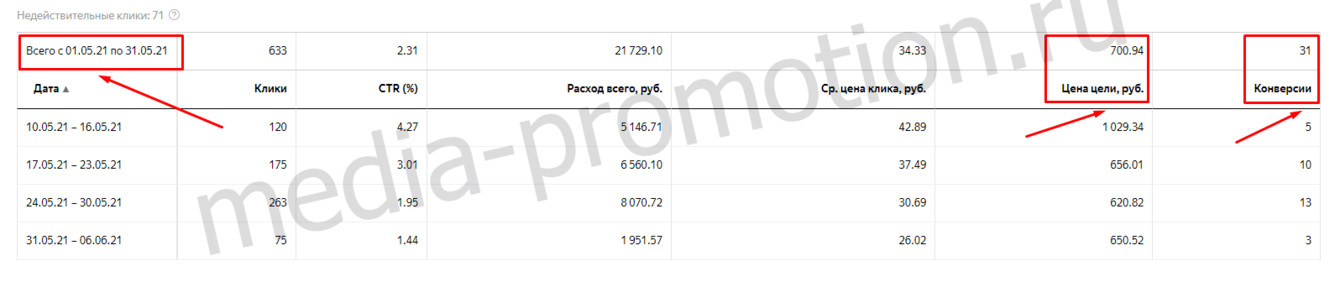 После грамотной настройки рекламы Яндекс Поиск + Рся в период с 1 по 31 мая на сайт пришли 31 заявок по 700 рублей.