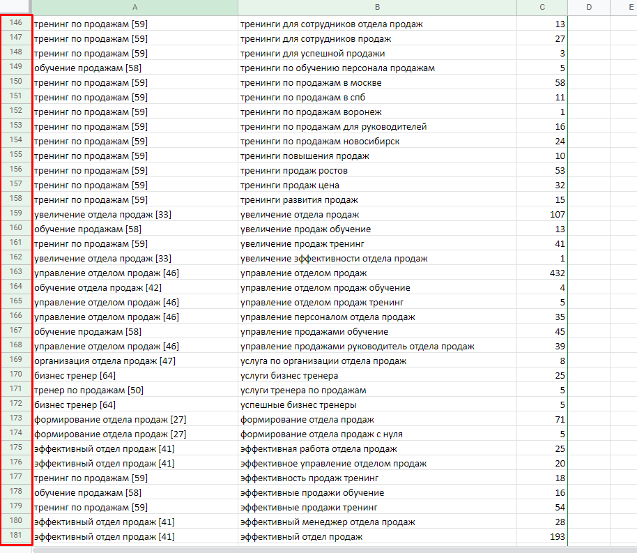 3. Тщательно отминусовали все ключи, которые нам не подходят/не целевые/не отражают сути нашего УТП и т.д.