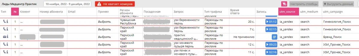 В итоге за период с 10.11.22 по 9.12.22 по данным Callibri и Яндекс.Метрики было совершено 126 уникальных конверсий, из них: 74 звонка, 33 отправки формы и 19 заполненных форм в чате на сайте.