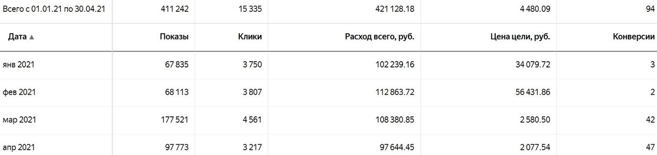 Кампании у клиента работают 11 месяцев, среднемесячный бюджет составляет 100 т.р. с НДС, стоимость звонка более 30 000 рублей.
