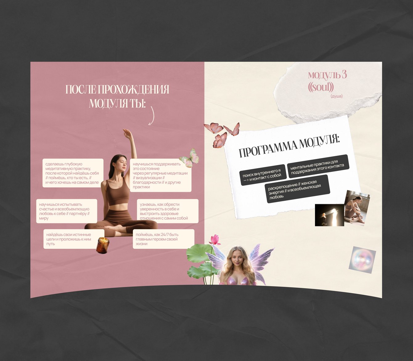 Про состояние души и контакт с собой. Использовали изображения, которые символизируют легкость в контакте с самой собой - бабочки, сказочная эстетика фей