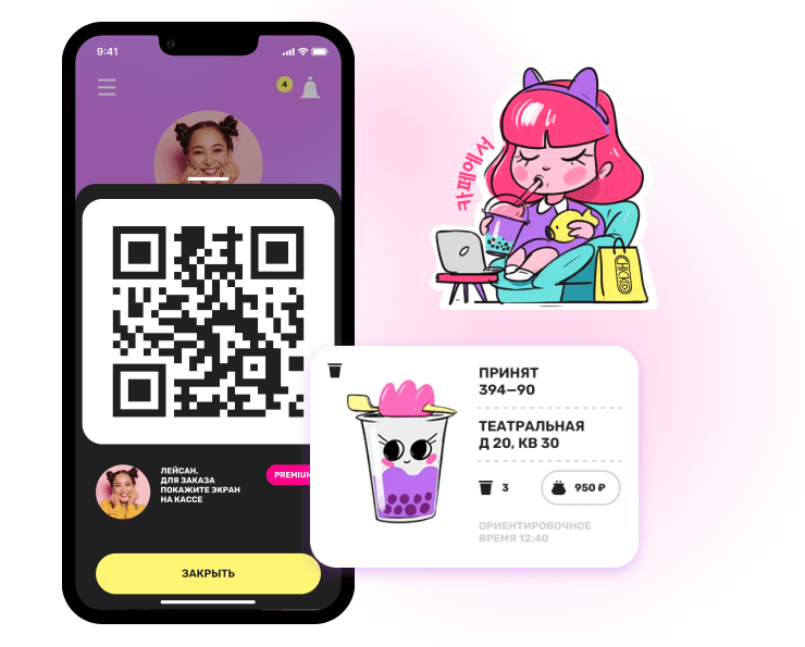 Когда гость забирает заказ самовывозом из ресторана, он просто показывает QR-код, который формируется в приложении.