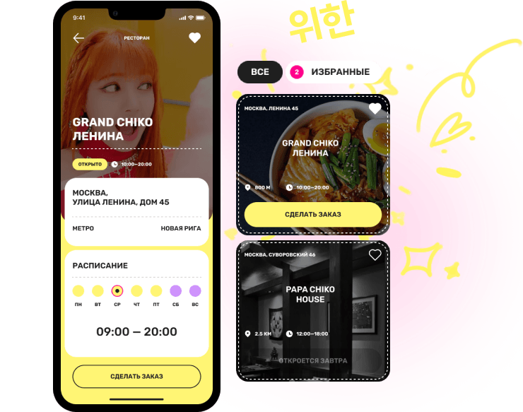 Клиент использовал готовую платформу для ресторанов с индивидуальным дизайном сети Chicko – при этом: