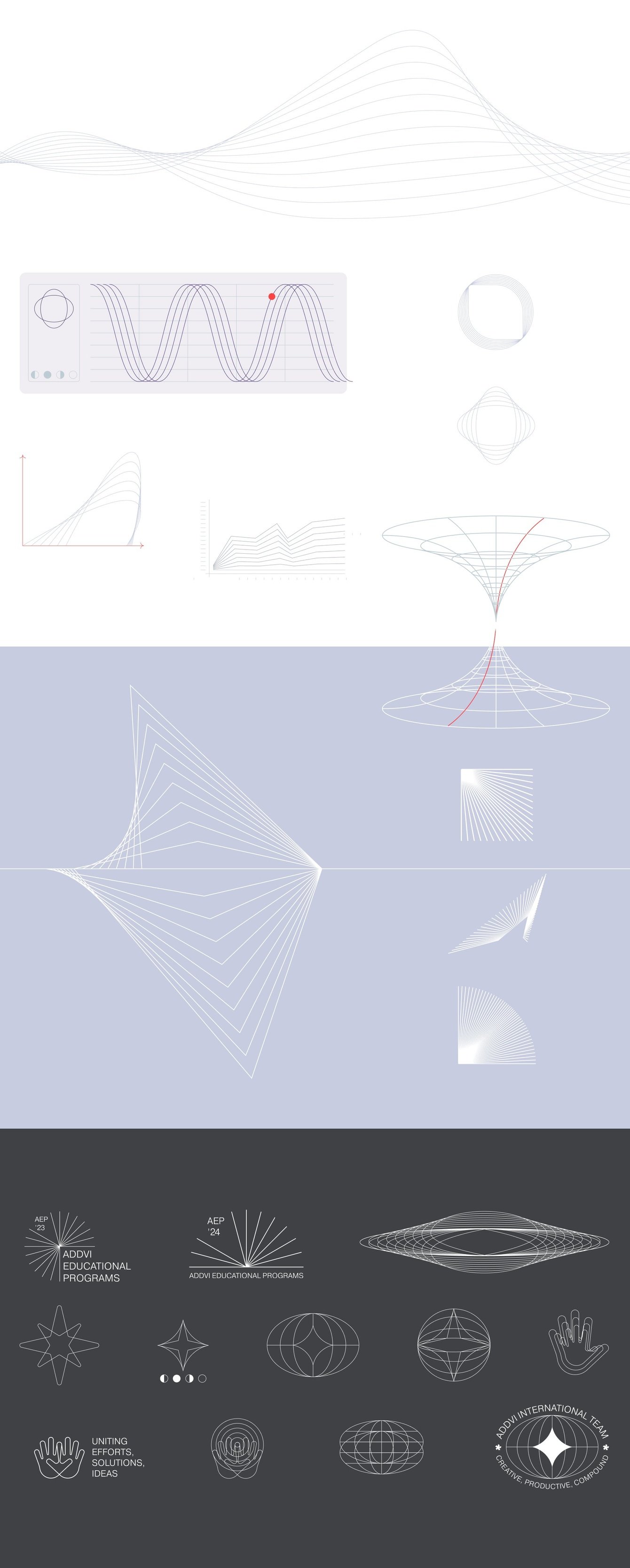 В качестве знака компании мы выбрали новую полигональную фигруру — астериск. Симметричный и сложенный из равных частей этот знак транслирует разнонаправленность деятельности Addvi, которая сведена к общему результату.
