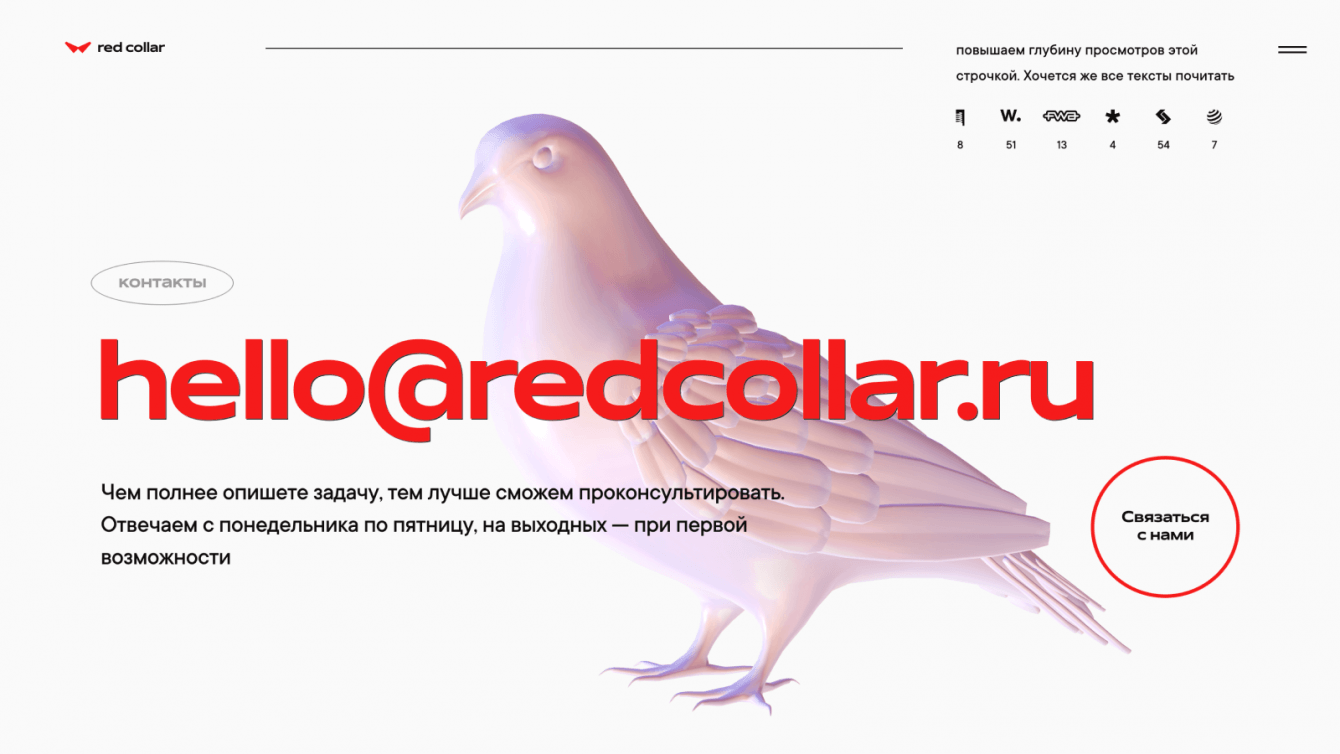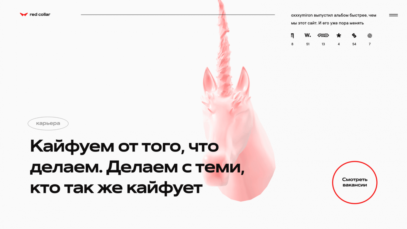 К 2019 году мы в Red Collar сильно выросли: успели завоевать море международных наград и положить в портфолио кейсы для Росбанка и других лидеров рынка. Необходимо было обновить сайт в соответствии с новым позиционированием компании: не только передать нашу сильную дизайн-компетенцию, но и подчеркнуть экспертизу в разработке.