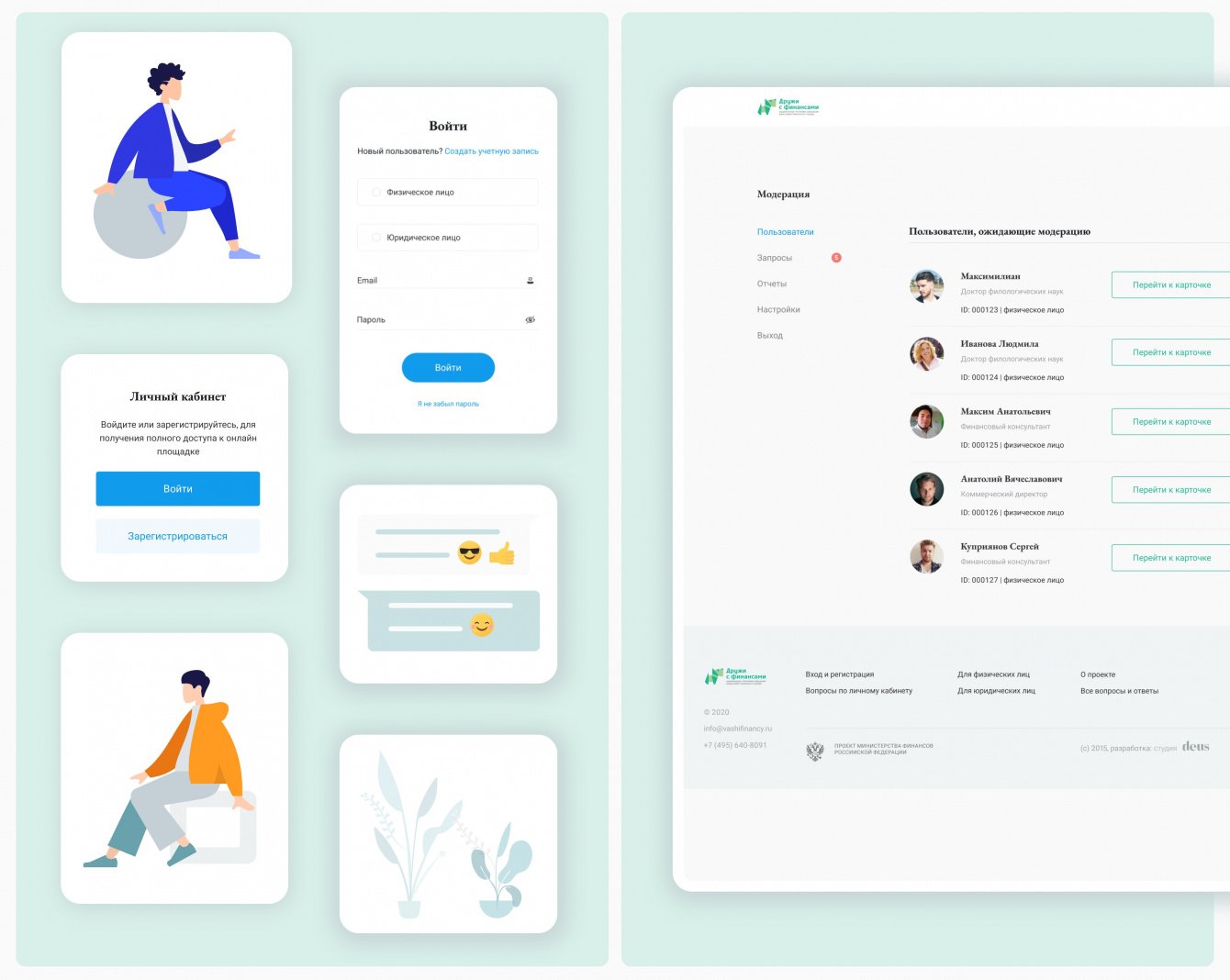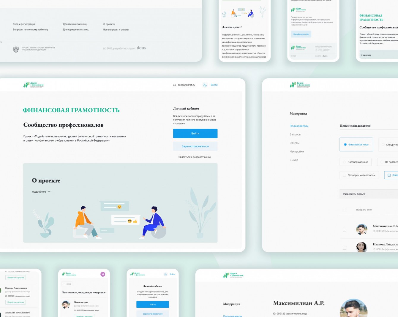 Дружи с финансами – проект для Министерства финансов. В рамках концепции портала «Дружи с финансами» была разработана социальная сеть для сообщества профессионалов, где они могут общаться и обсуждать актуальные темы и новости финансовой сферы. Мы сделали на портале несколько разделов, включая форум, публикации, личный профиль, библиотеку. Также мы предложили оформить портал в легком, минималистичном стиле без сложных элементов.