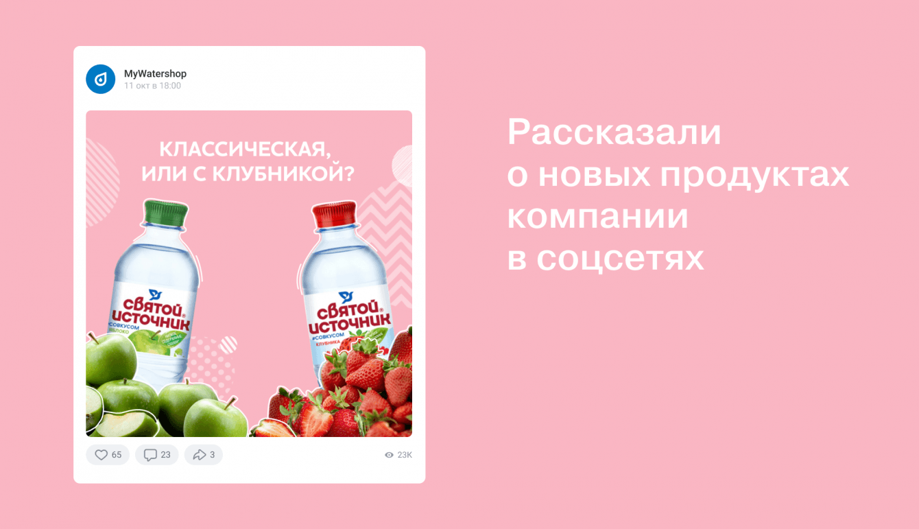 MyWatershop — сервис доставки воды домой или в офис от компании IDS Borjomi Russia, в которую входит «Святой Источник». Бренд обратился к нам, чтобы вернуть активность на площадку и получить ответ на вопрос, как работать с такой огромной целевой аудиторией, как потребители воды?