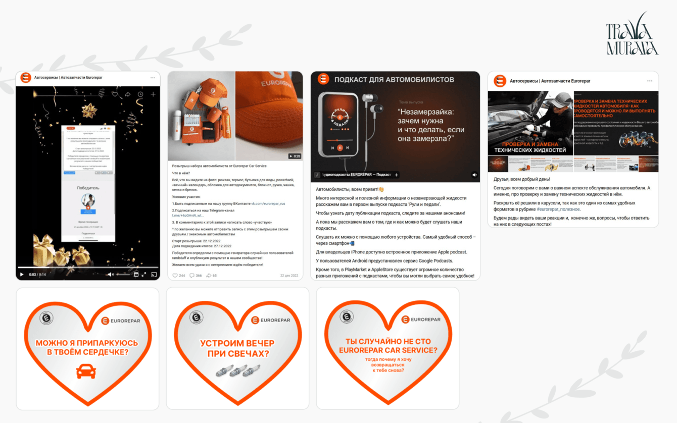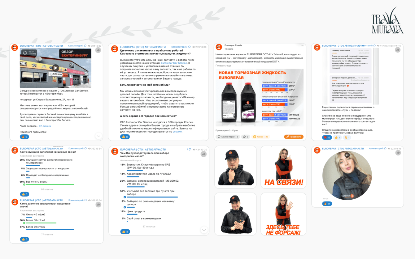 Задача: повысить узнаваемость бренда Eurorepar среди автомобилистов на российском рынке, а также увеличить вовлеченность пользователей в таких социальных сетях как: ВКонтакте и Телеграм.