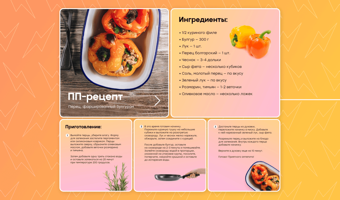 Для повышения лояльности и усиления доверия к бренду создавали полезные публикации — например, с советами по нутрициологии. Для наглядности оформляли текст в формате карусели или карточек.