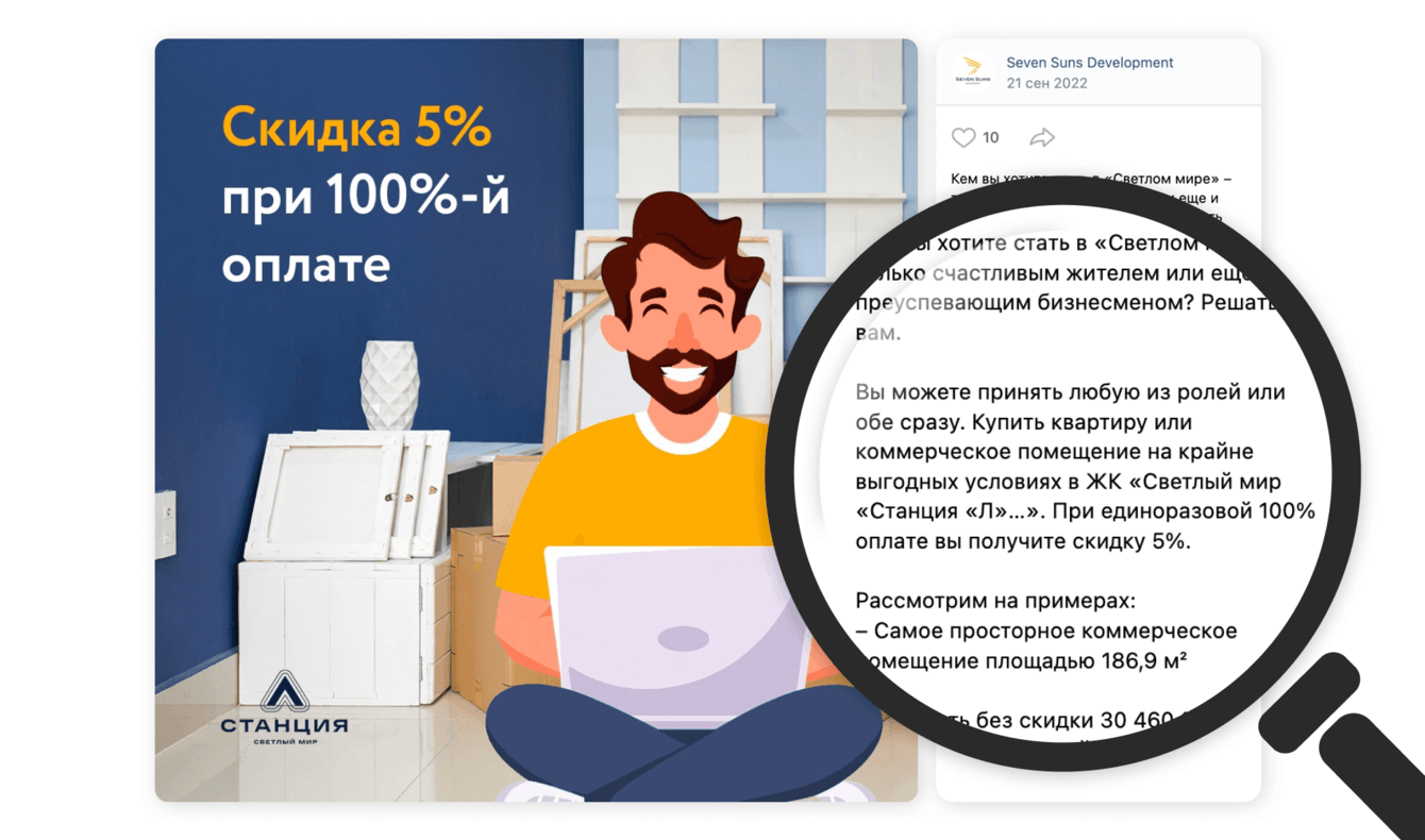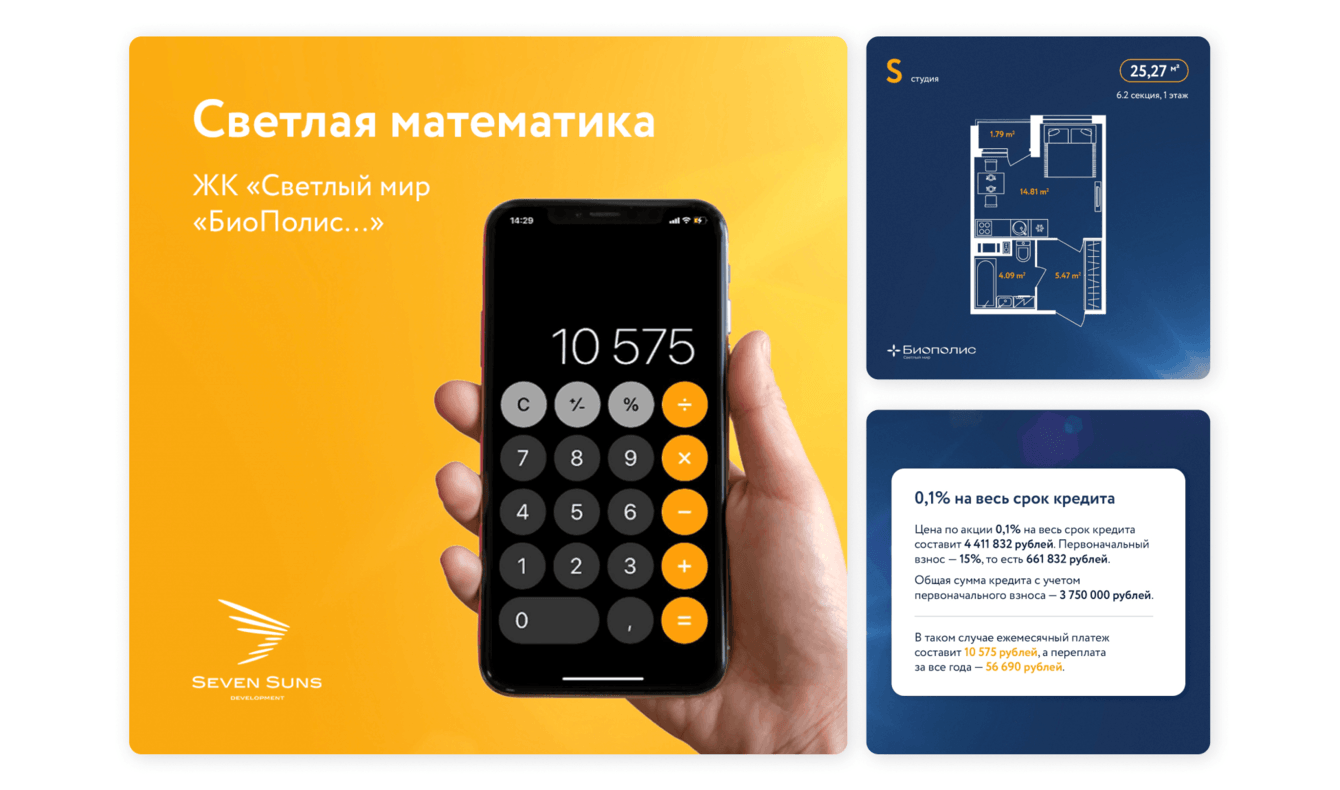 Чтобы привлечь потенциальных покупателей, мы разбирали планировки и рассказывали об акциях от девелопера. Особым направлением стала «Светлая математика», в которой мы просчитывали, каким будет ежемесячный платеж и переплата при покупке конкретной квартиры в ипотеку.