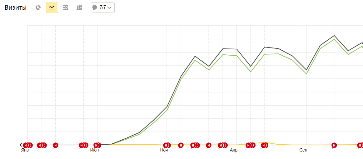 Статьи достигли своего максимума и продолжают приносить трафик без дальнейших вложений со стороны клиента, ведь мы создали вечнозеленый качественный контент, нацеленный на максимальную пользу для заказчика.