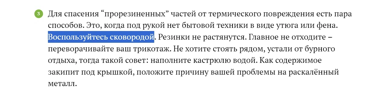 На скриншоте пример статьи из топ-10 с советами о том, как сушить носки на сковородке: