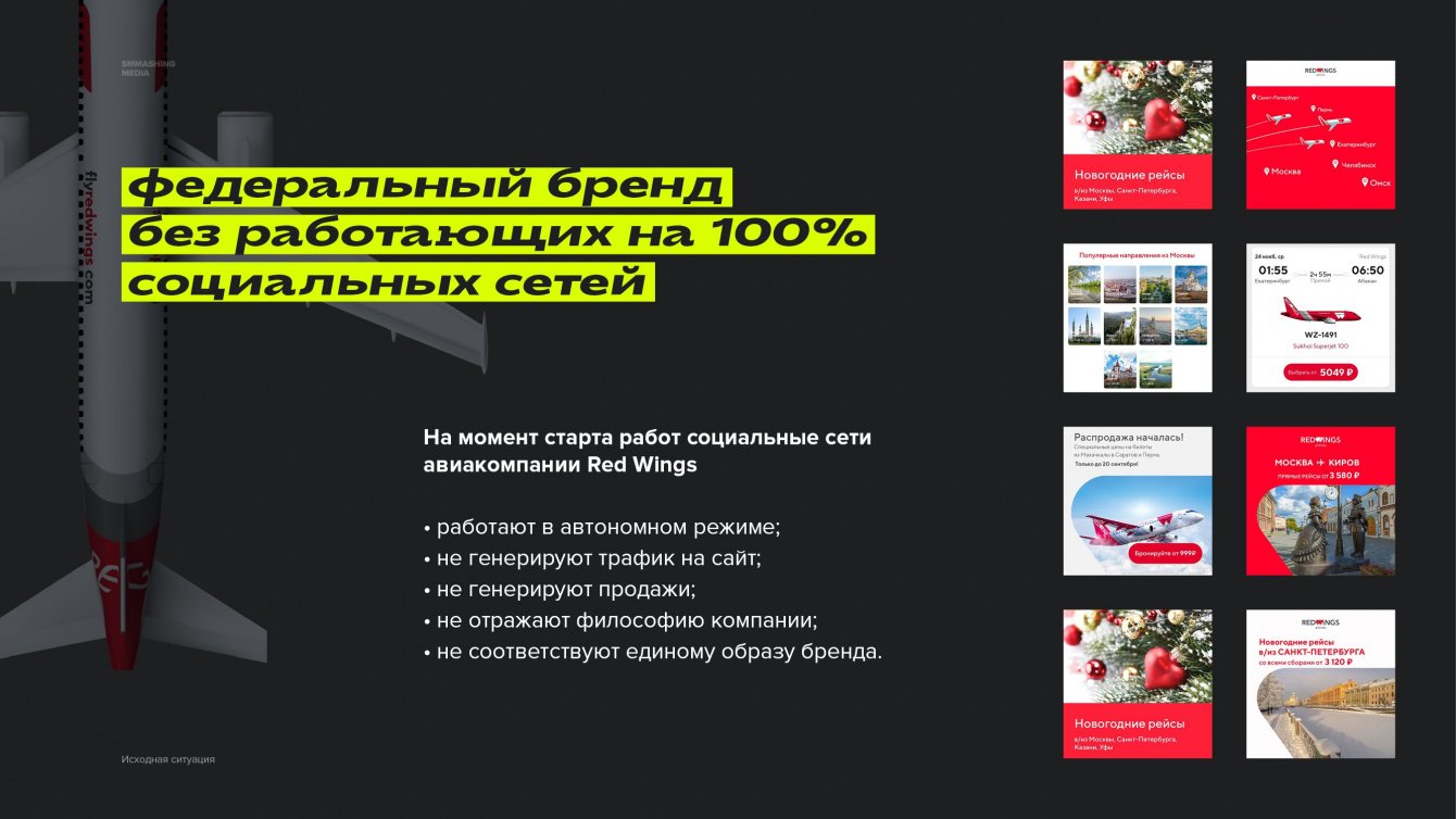 На момент старта работ социальные сети авиакомпании Red Wings находились в сложной ситуации: