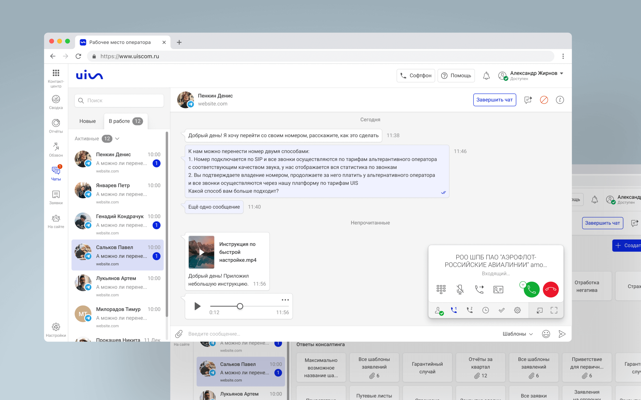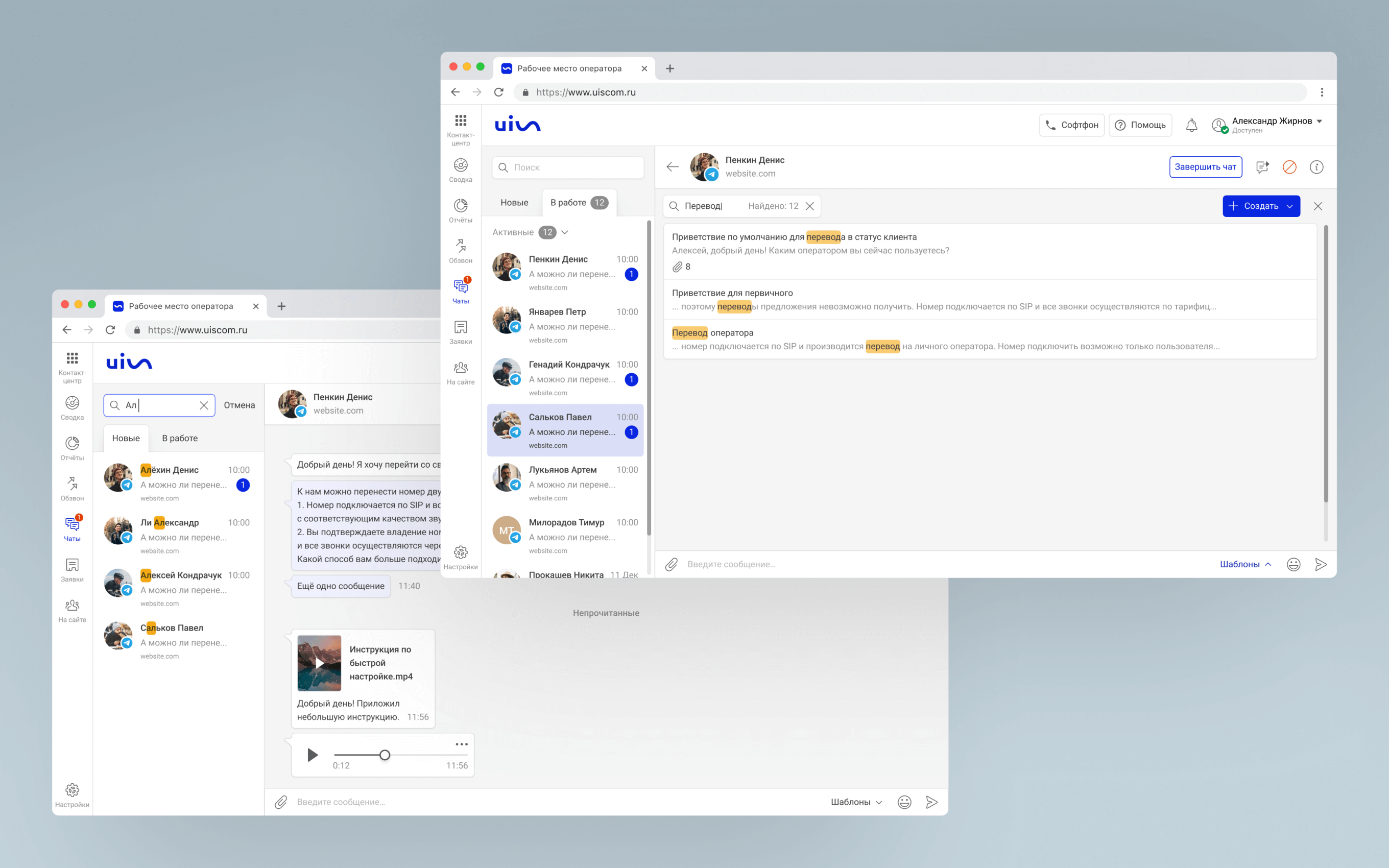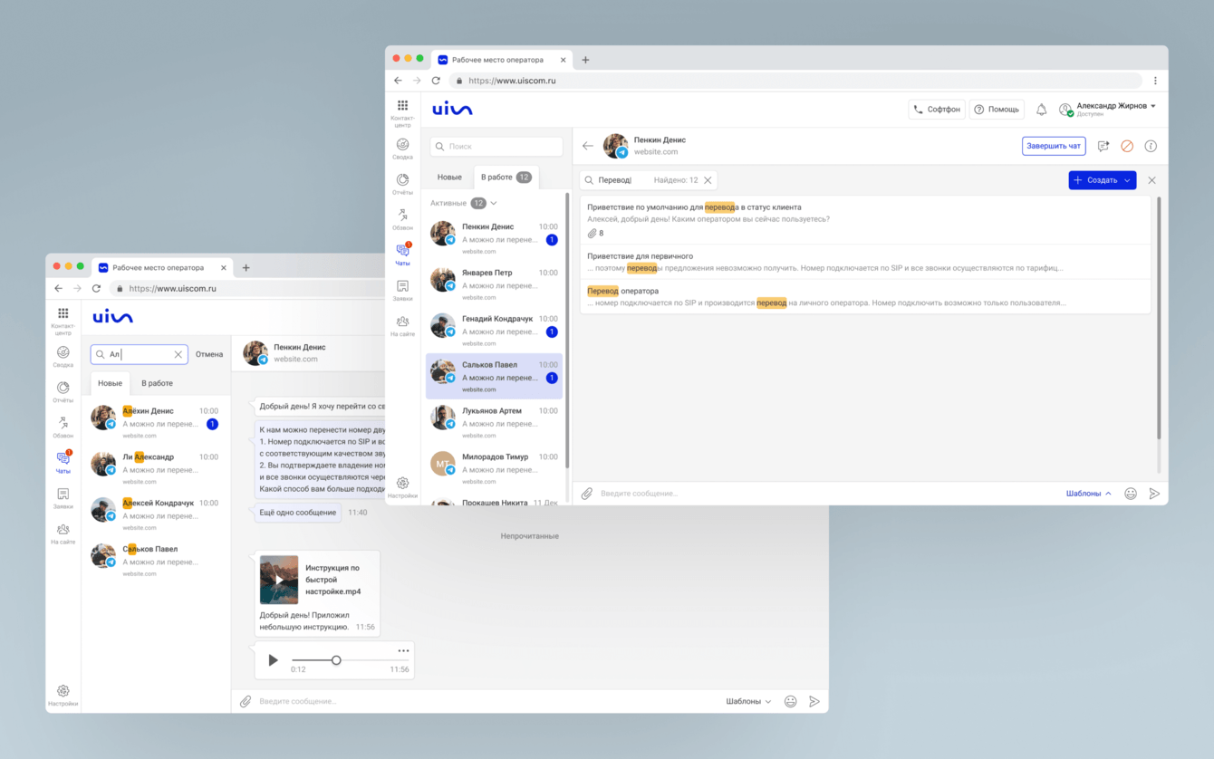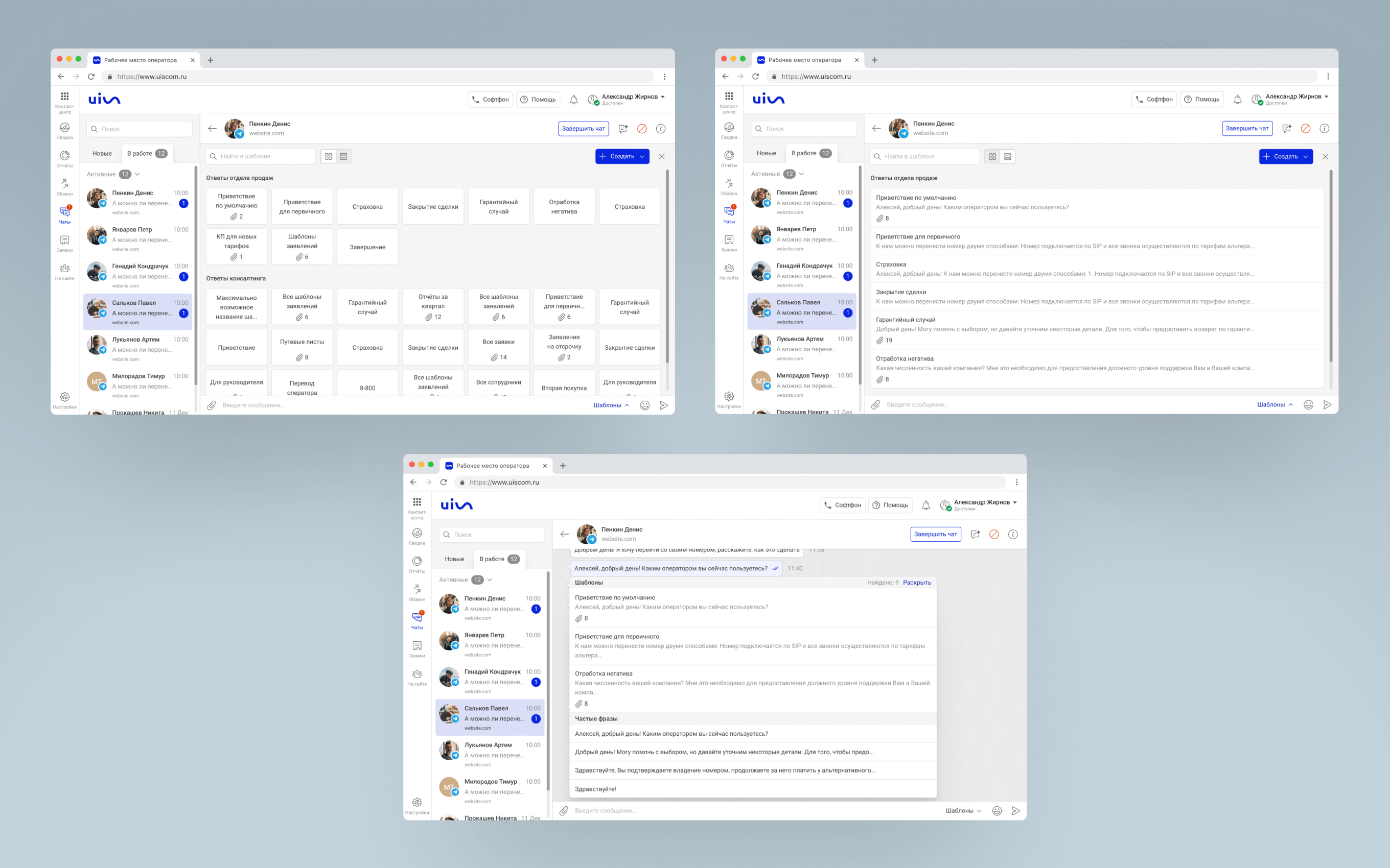 Готовые шаблоны экономят 15% времени операторов, поэтому в интерфейс добавили функционал создания, поиска и быстрой подстановки шаблонов.